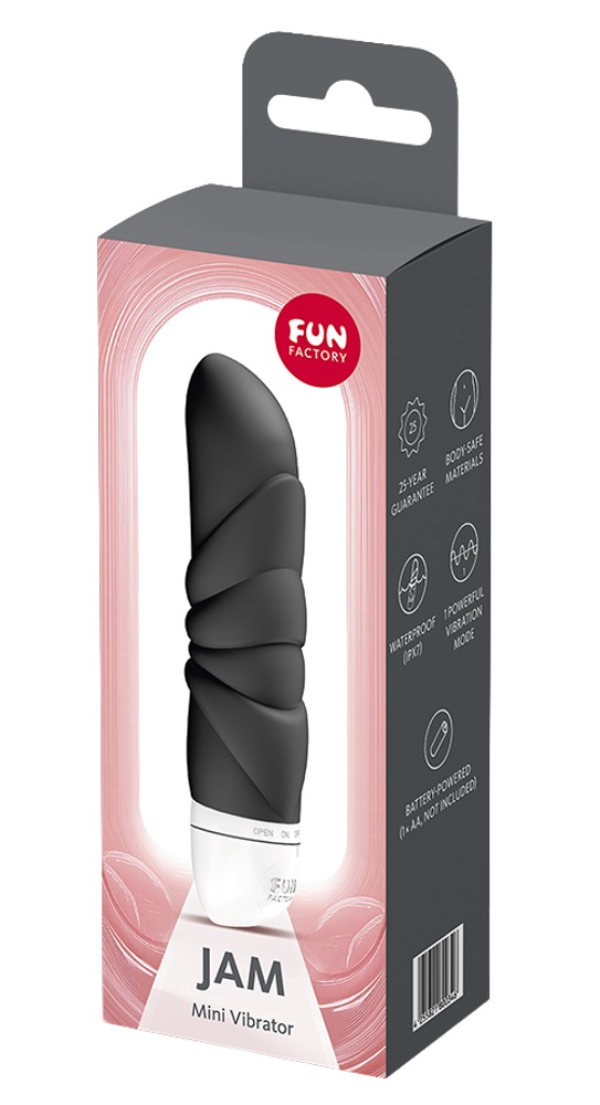 Mini-Vibrator für Maxi-Fun! Der Minivibrator JAM von Fun Factory überzeugt trotz seiner kompakten Größe mit richtig starker Performance! Ergonomisch geformt, liegt der leichte Power-Minivibrator perfekt in der Hand. Seine strukturierte Oberfläche und die durchdacht geformte Spitze stimulieren gezielt außen (Klitoris) und innen (G-Zone).